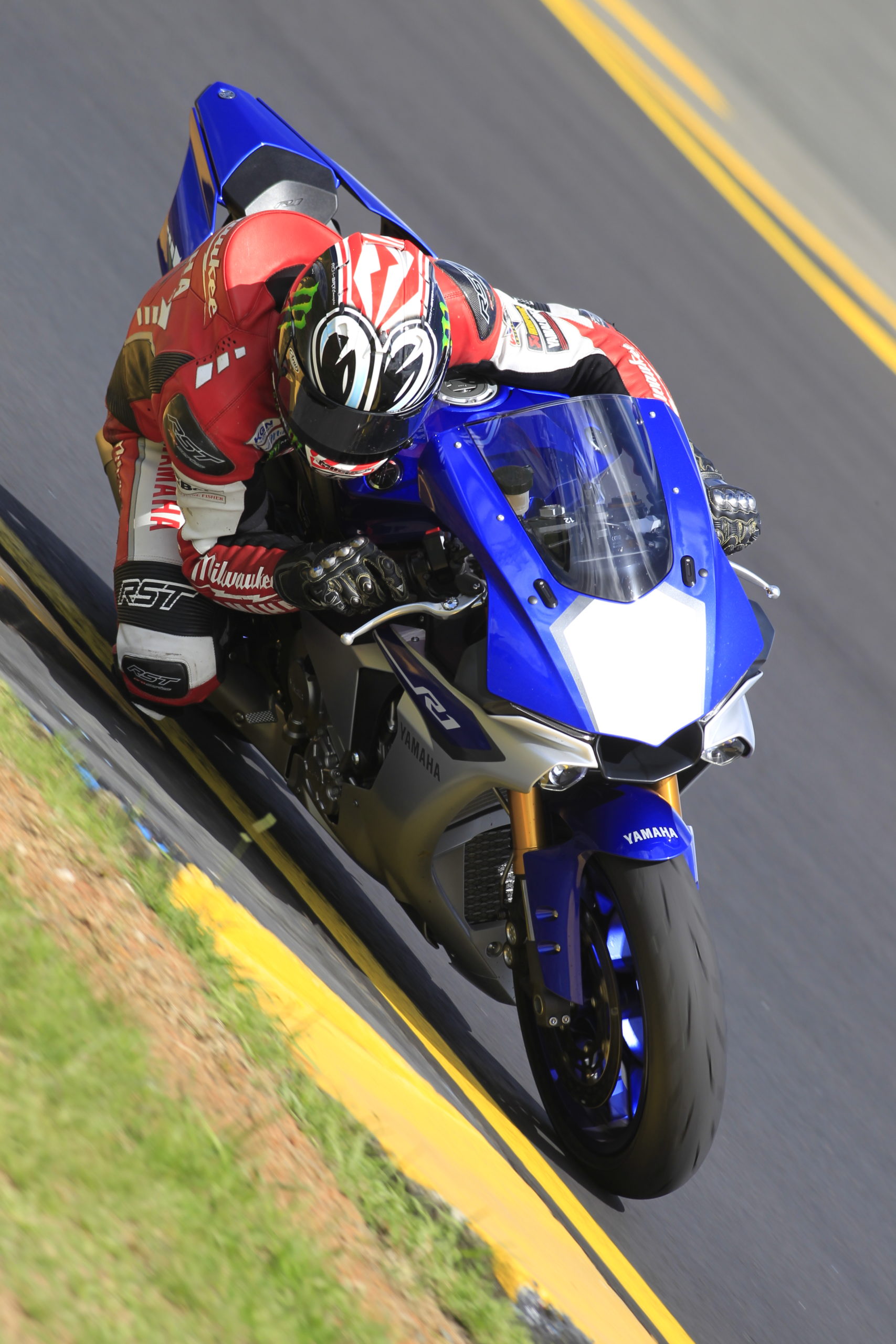 Today I was at Sydney Motorsport Park for the World Launch of the Yamaha R1 and it was the first time i’ve ridden the new bike. In the past I haven’t pursued the opportunity to do track days on standard road bikes as they have just been too far away from what I race on, to gain much value. Although my race bike still feels different, it’s the closest I have experienced to it. You can really tell Yamaha have designed the new R1 as a race bike, legal for road use not like past methods of building a road bike and teams having to adapt it to the race track. The excitement is building for my Milwaukee Yamaha!